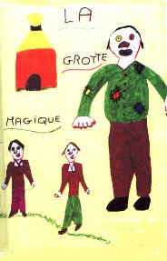 Tout à coup, un géant apparut ; il était très cruel, avait un oeil rouge, un oeil jaune, les cheveux verts et il mesurait 5 mètres. Adam et Grison allèrent chercher le druide. Le druide, tout effrayé, partit prévenir les forgerons. -"Qu'avez-vous fait ? demande le druide. -Rien ! On regardait ce qu'il y avait dans le chaudron." |